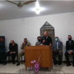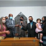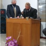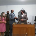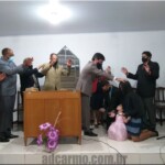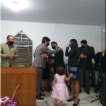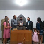 O pr. José Geraldo dos Santos que até então conduzia a congregação, se despede, e em ato simbólico entrega as chaves da congregação.