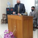 O pr. José Geraldo dos Santos que até então conduzia a congregação, se despede, e em ato simbólico entrega as chaves da congregação.